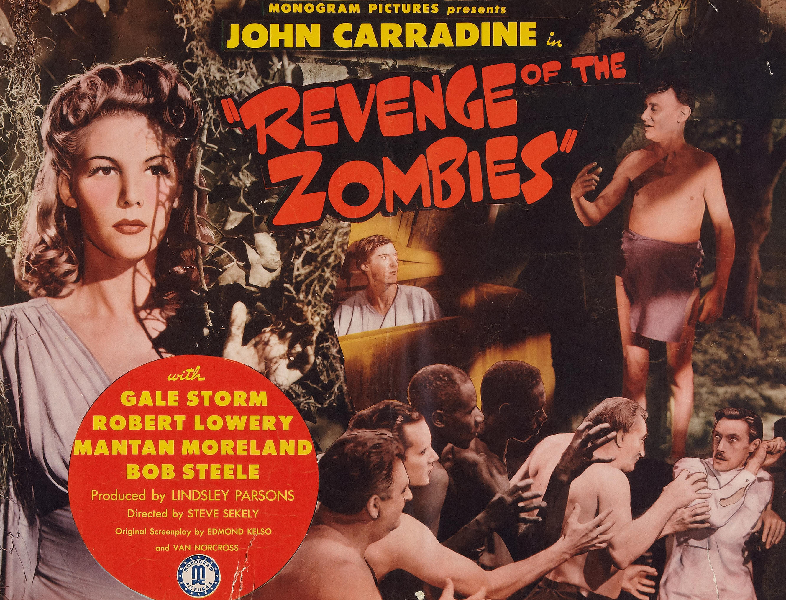The problem is that this zombie seems to have free will and doesn't like being told what to do...YIKES, is this a horror or what! It's John Carradine and Gale Storm in "Revenge of the Zombies'" which you can watch in The Lab!