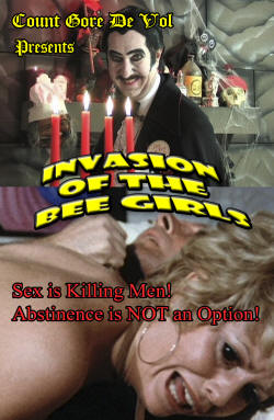 Invasion of the Bee Girls From the pen of writer Nicholas Meyer, who gave us "Wrath of Khan," comes a bizarre tale of men, living around a biological research facility, dying from extreme sexual pleasure! Count Gore brings you the back story and deadly scandal surrounding one of it's stars. |