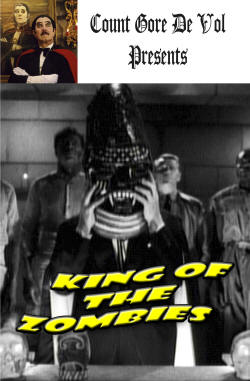 King of the Zombies Count Gore De Vol hosts the story of a small plane, blown off course by a storm, that crash lands off the south coast of America. The passenger, his manservant and the pilot take refuge in a mansion owned by a doctor. Thinking that the mansion is haunted by zombies and ghosts, the 3 eventually find a voodoo ritual in the cellar, where the doctor is trying to acquire World War II intelligence by transferring personalities into his zombies. |