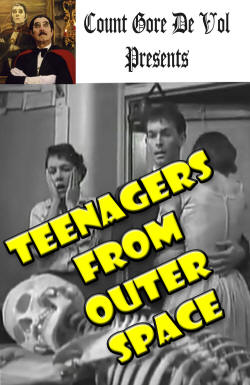 Teenagers From Outer Space A young alien falls for a pretty teen Earth girl and they team up to try to stop alien invaders from using Earth as a breeding ground for giant lobsters. The invaders, arriving in a flying saucer, carry deadly ray guns that turn Earth-people into skeletons. Inspired by this film, Count Gore De Vol explores the plight of being a teenager, being human and even being an invading alien with great hair! |