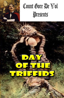 Day of the Triffids A brilliant global meteor shower not only blinds most of the Earth's population, but also deposits millions of spores that grow into giant, mobile human-eating plants! Can the sole sighted survivors find a way to stop the extermination of humanity? Can Count Gore successfully grow his own Triffid? |